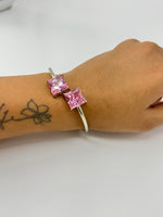 925 Silver Pink Princess-Cut Cuff Bracelet – Modern Romance by Rajasi
