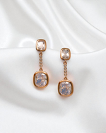 Rose Gold Cushion Cut Dangle Earrings | 925 Sterling Silver CZ Drop Earrings | Modern Bridal & Evening Jewelry