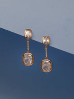 Elevate your style with these rose gold plated sterling silver dangle earrings, designed with sparkling cushion-cut crystals and a delicate line of AAA cubic zirconia stones. A modern yet timeless design, these earrings bring just the right balance of luxury and elegance — perfect for brides, parties, or chic evening looks.
