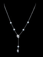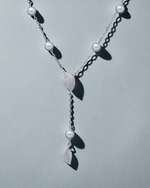 Add a touch of elegance to your collection with this 925 sterling silver pearl necklace, beautifully designed with a Y-shaped drop chain and delicate leaf pendants encrusted with sparkling cubic zirconia. Adorned with luminous synthetic pearls, this piece brings a graceful balance of nature-inspired charm and timeless sophistication.