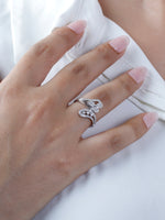This 925 sterling silver triple teardrop ring combines elegance and modern style. Adorned with sparkling cubic zirconia, its open swirl design offers a perfect adjustable fit for any finger size.