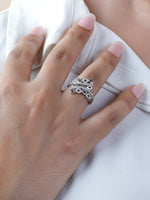 With its unique layered design, this ring is a perfect statement accessory — whether for parties, weddings, or elegant evening wear. Crafted with high-quality silver and finished in rhodium for extra shine and durability, it’s hypoallergenic, tarnish-resistant, and built to last.