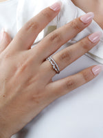 This elegant 925 Sterling Silver Leaf Band Ring features shimmering marquise-cut cubic zirconia stones beautifully set in a delicate leaf-inspired design. The sparkling CZ stones are complemented by a row of tiny accent stones, giving it a modern yet timeless look.