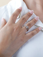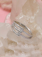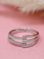 Elevate your look with this 925 sterling silver triple band ring, featuring sparkling cubic zirconia stones set in a modern, open design. This ring combines elegance with everyday versatility.
