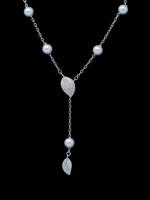 925 silver pearl leaf pendent necklace
