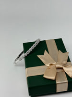 Bring a touch of glamor to your wrist with this handcrafted 925 sterling silver bangle, encrusted with AAA+ cubic zirconia stones in a seamless round-cluster arrangement.
