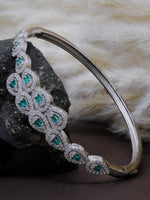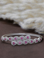 Add a touch of elegance to your style with this 925 Sterling Silver Bangle Bracelet, available in two stunning variations – Pink Stone and Green Stone. Crafted with precision, this designer kada features a teardrop pattern embellished with sparkling CZ diamonds, making it the perfect blend of luxury and sophistication.