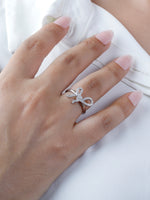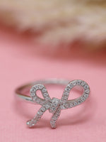 925 Sterling Silver Bow Ribbon Ring – Elegant CZ Adjustable Ring for Women