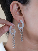 Crafted from premium 925 sterling silver, these elegant dangle chain earrings bring sophistication to any look. Featuring sparkling cubic zirconia and a unique chain-link design, they are the perfect accessory for both everyday wear and special occasions.