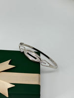 925 Sterling Silver Modern Oval Cutout Bangle – CZ-Studded Geometric Bracelet for Women