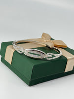 Add a bold yet elegant flair to your style with this 925 sterling silver bangle, featuring a contemporary oval cutout centerpiece fully encrusted with fine Cubic Zirconia stones. Its sleek geometric style blends sophistication with modern edge—ideal for both Western and Indian outfits.