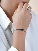 Make a powerful statement with this modern 925 sterling silver open cuff bracelet, featuring a sleek inlay of black cubic zirconia stones. The contrast between the deep black sparkle and the high-polish silver surface creates a bold yet minimalistic design perfect for those who like their style clean, sharp, and impactful.