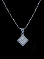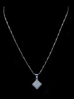 925 Sterling Silver Square Pendant Necklace with Zircon Stones – Stylish Silver Jewelry for Women