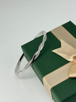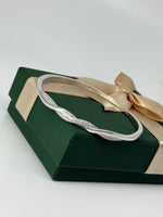 925 Sterling Silver Twisted Bangle with Cubic Zirconia – Elegant Minimalist Bracelet for Women
