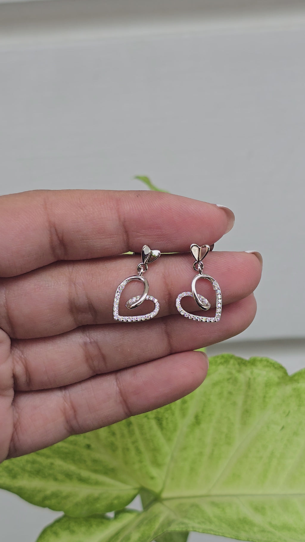 Rajasi Silver 925 Heart Drop Earrings – Dainty Sterling Silver Double Heart Design with CZ Stones