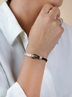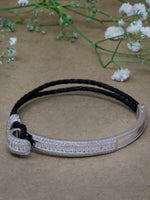 Rajasi Silver 925 Sterling Silver & Leather CZ Bracelet – Unisex Modern Jewelry